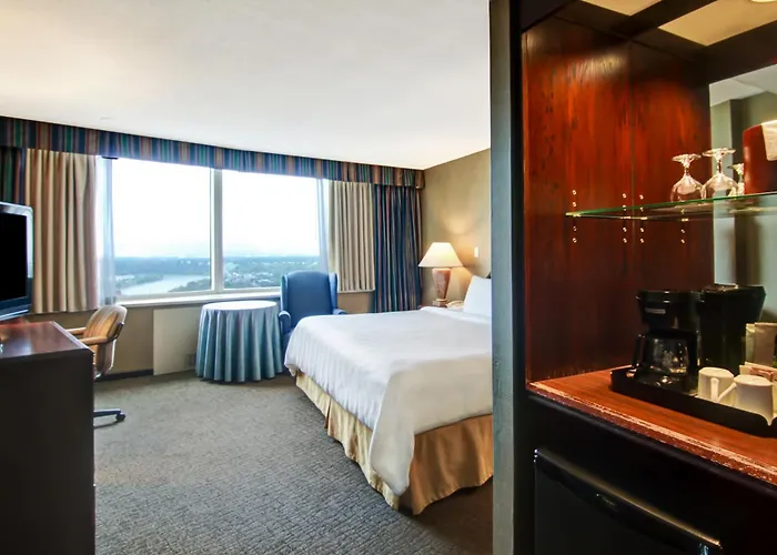 Die komfortablen Gästezimmer im Chateau Lacombe Hotel verfügen über moderne Annehmlichkeiten wie kostenlose Wi-Fi-Verbindung, Klimaanlage, und Flachbildfernseher. Viele Zimmer gehen mit beeindruckendem Blick auf die Stadt oder den Fluss einher und sind mit einem eigenen Badezimmer ausgestattet, das sowohl Badewanne als auch Dusche bietet.